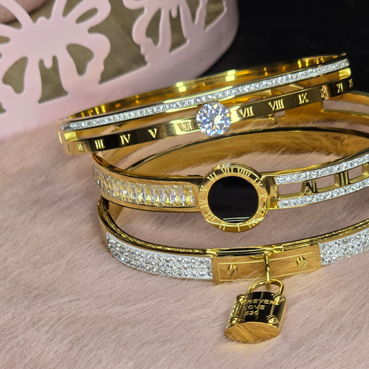 Stainless Steel Time Queen Cuff Bracelet Trio