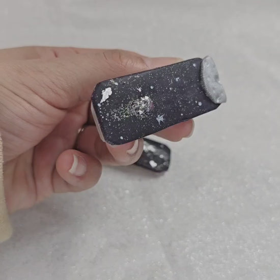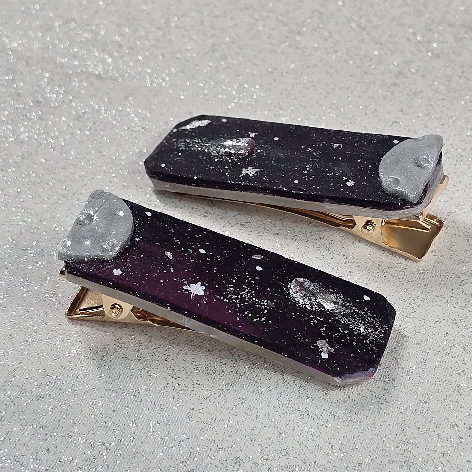 Unleash your inner galaxy with our Handmade Cosmic Hairclips! Made of polymer clay and infused with glitter, sparkle and cosmic magic, these clips will add a touch of whimsy to any hairstyle. Perfect for any playful and fun-loving fashionista!