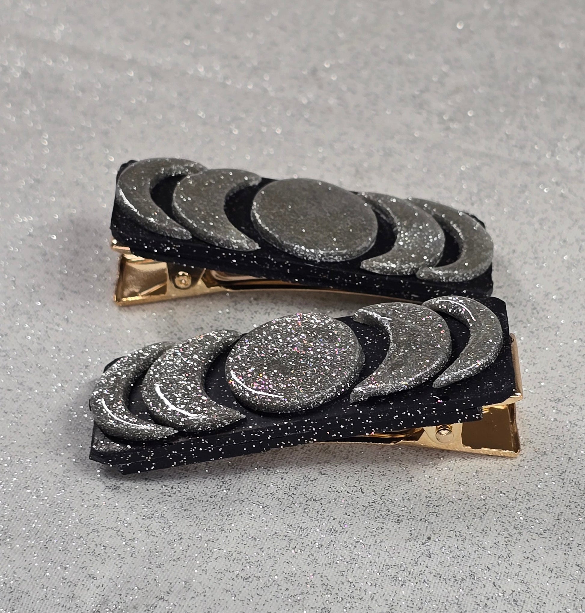 Transform your hair into a celestial masterpiece with our Handmade Moon Phases Hair clips. Handcrafted with polymer clay and love, these clips feature phases of the moon to add a touch of magic to your everyday look. Shine bright like the moon with these unique and playful hair accessories.