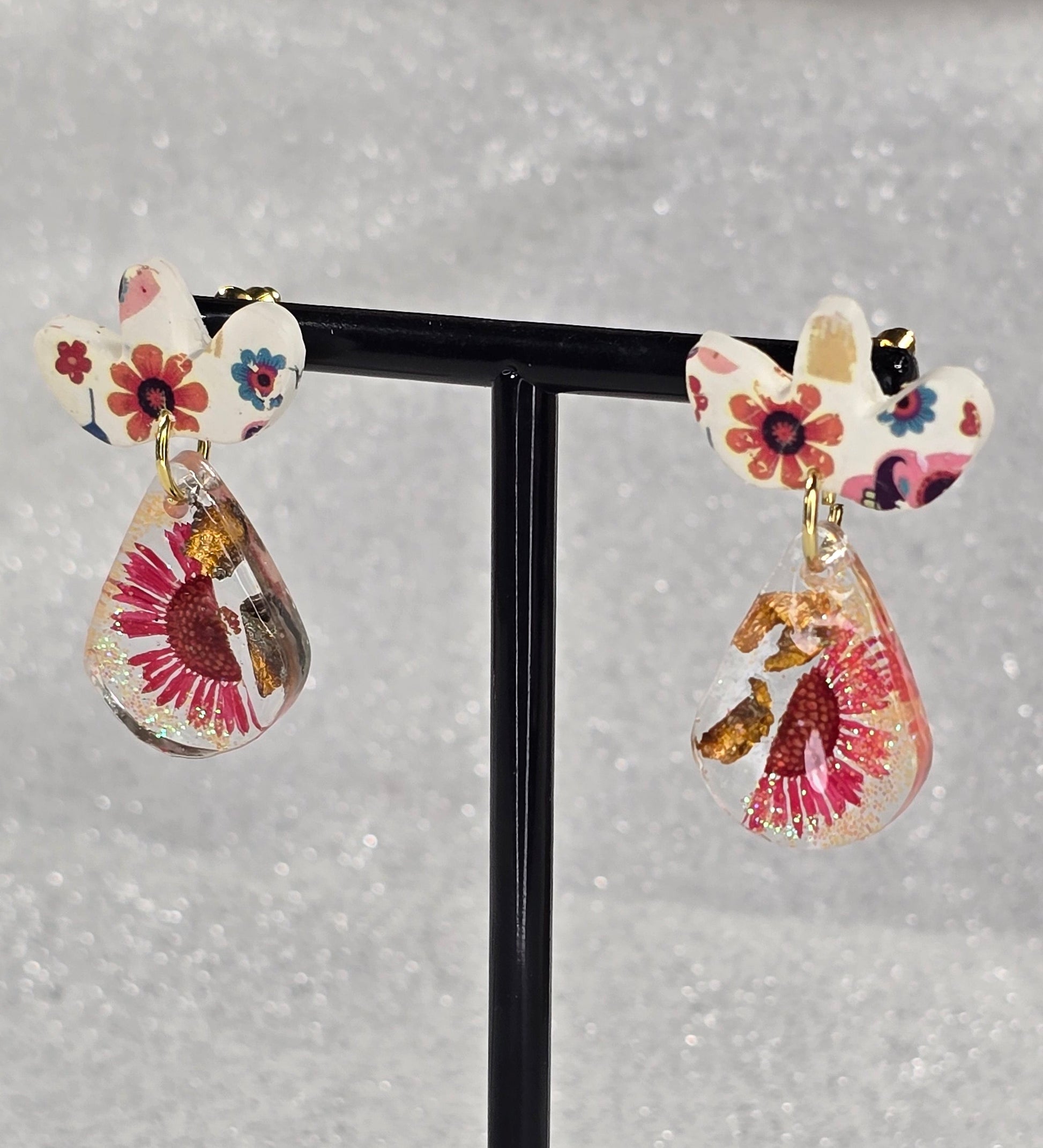 Expertly crafted with a blend of polymer clay and resin, Heritage Flower Power features a stunning dangle adorned with real flowers. Let its delicate design and natural elements bring a touch of beauty to any outfit.